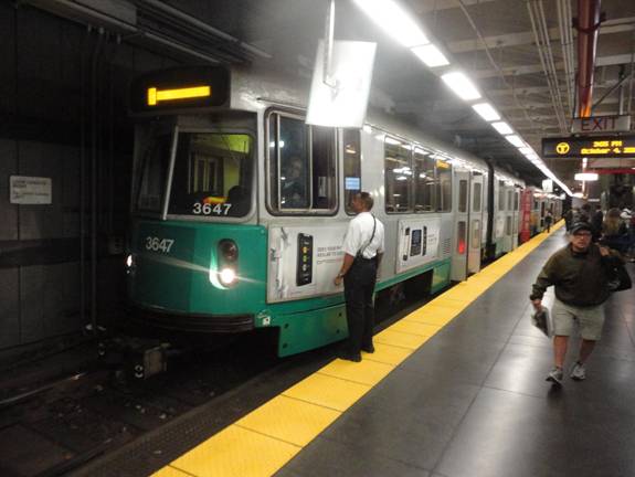 I walked back to the Green Line and caught the next inbound train. I photographed it before I got on.