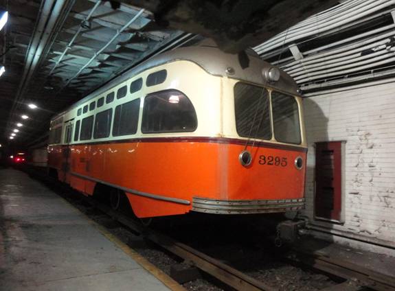 While I was waiting for the car to depart, I saw another PCC was coming. My car soon departed. I saw the second PCC was #3260; one of the PCCs I rode the day before.