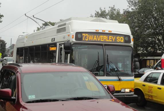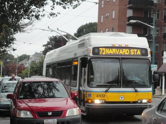 I then left the station and had lunch at McDonald's. After lunch, I caught a red line train to Harvard and waited for a trolleybus. Trolleybus #4111 showed up on route #73. I photographed it before I got on.