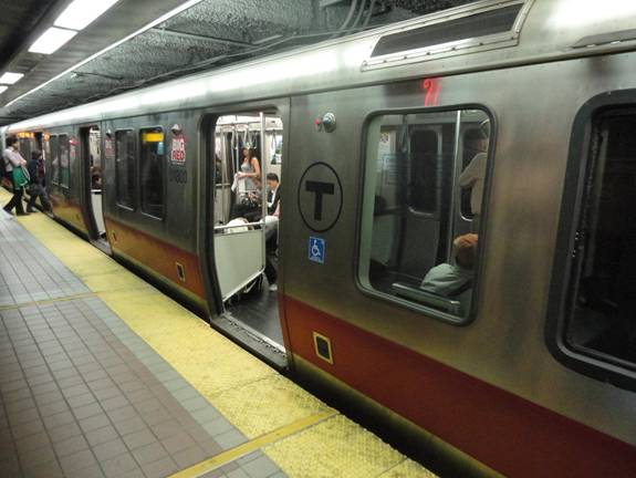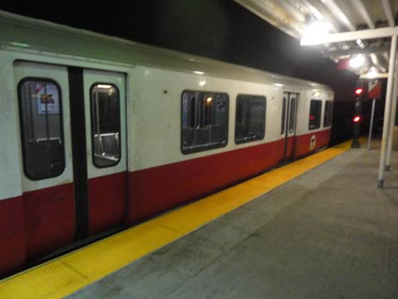 I then transferred to the Red Line rode one stop to South Station. The train I rode was the newer series of cars on the Red Line. However, the cars I rode were labeled “Big Red” for being high capacity cars. The capacity was increased by removing some seats. Since I was only riding one stop, it didn't bother me so much. At South Station, I got off and photographed the “Big Red” car.