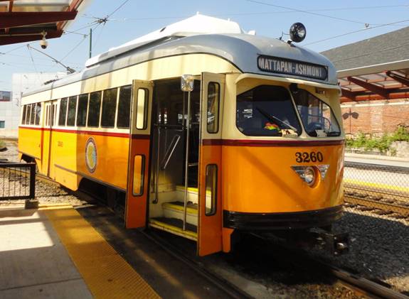 At Ashmont, I had to wait several minutes for the next car to arrive. Soon PCC #3268 arrived. I photographed it before I got on.