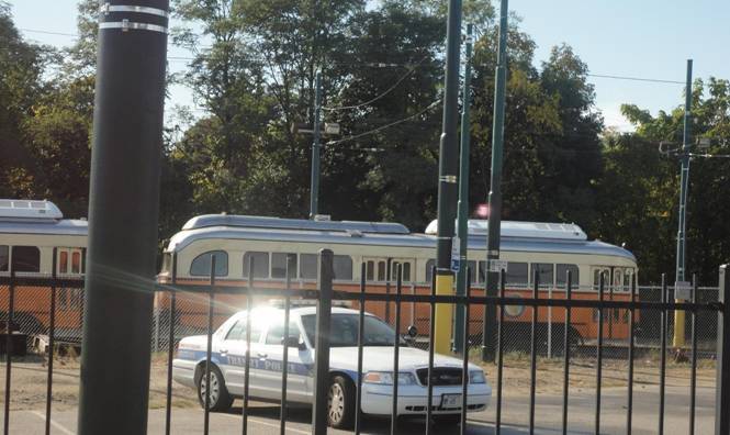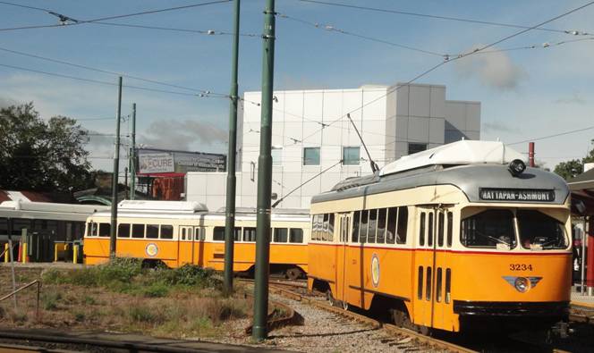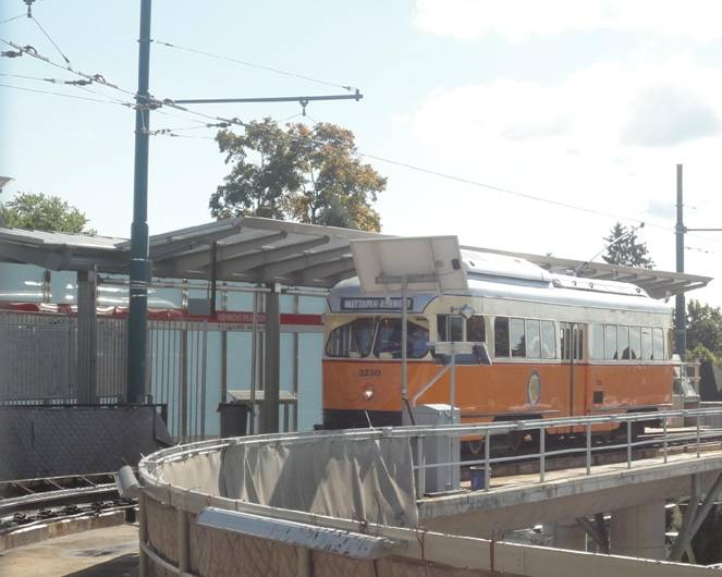 for a streetcar. The streetcar that came was PCC #3230. I photographed it