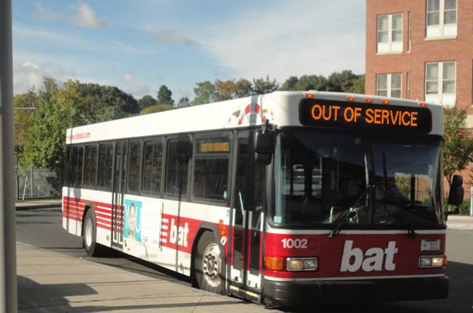 pulling away. I also photographed a bus lettered for a company called BAT.