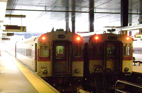 station. When I got to the station, I saw three MBTA commuter trains, but no