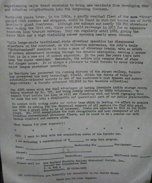 I then entered the car barn where I saw what I had come to see: Former Toronto Witt car #2890. I took some photos of the car.