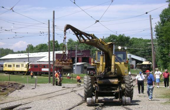 Next came a former MBTA track unit that has an electromagnet. They demonstrated the magnet by having the unit pick up a metal chair! Next came the former New York Redbird subway cars I photographed earlier.