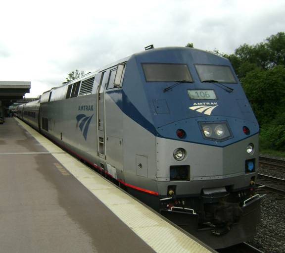 Amtrak P42 #106 was leading the train today. The train stopped at Oakville, Aldershot, and Grimsby. I was given a card to fill out prior to crossing the boarder. We stopped at St. Catherines, we soon departed. We were soon underway again and stopped in Niagara Falls. The train crossed into the U.S. I was a little nervous about the customs inspection because I was worried I would be interviewed by the same customs agent who interviewed me who interviewed me on my Arizona Make-up trip. The train ran past the Niagara Falls New York station and then backed in. The customs agents got on. I was interviewed by a man who I found to be all right and not as anal as the woman who interviewed me on my Arizona Make-up trip. However, he asked to see my return ticket which I gladly showed him.