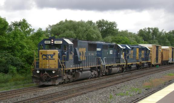 I then saw a westbound CSX freight approaching I photographed it and then filmed the Maple Leaf departing. After, I took one last photo as the Maple Leaf rounded a corner.