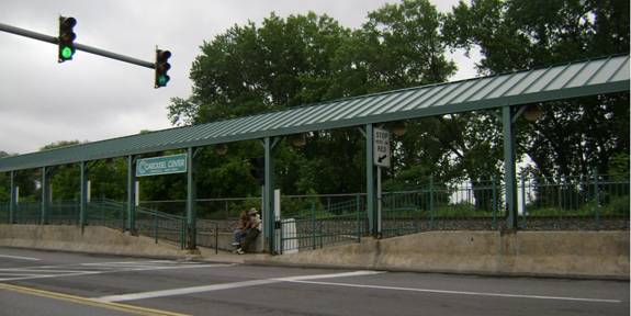 I first waited for a bus, but when I checked the schedule, I saw it would take too long, so I took a cab to my hotel and checked in. Shortly after I checked in, I phoned home and then took a bus to the Carousel Center mall. The reason it’s called the Carousel Center is that there is a restored carousel in the food court. I looked around a few stores and demoed a massage chair in one store. I then went outside and saw the former Carousel Center stop for the old On-Track Commuter train which was run by the New York, Susquehanna & Western Railway with RDCs until the service was discontinued several months ago. I took a picture of the old station.