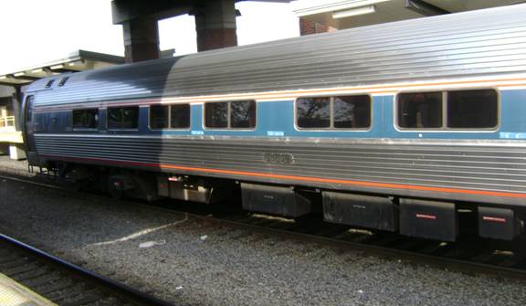 I lined up to board. Since many people were riding the train today, Amtrak was assigning seats. I was seated in Amfleet 2 coach #25004, another refurbished coach. We soon left. Shortly after my ticket was taken, I headed to the café car and took some interior shots.