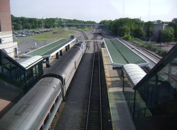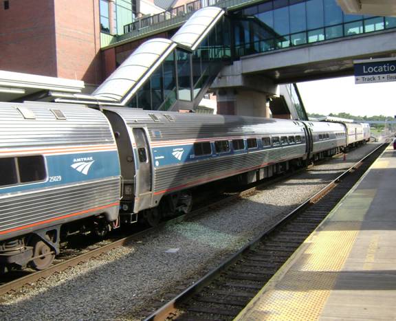 I saw what would be my connecting train to Boston. I had expected that I would just walk across the platform, however, my train was two tracks over and I had to go upstairs into the station to switch tracks. I took some photos of my connecting train.