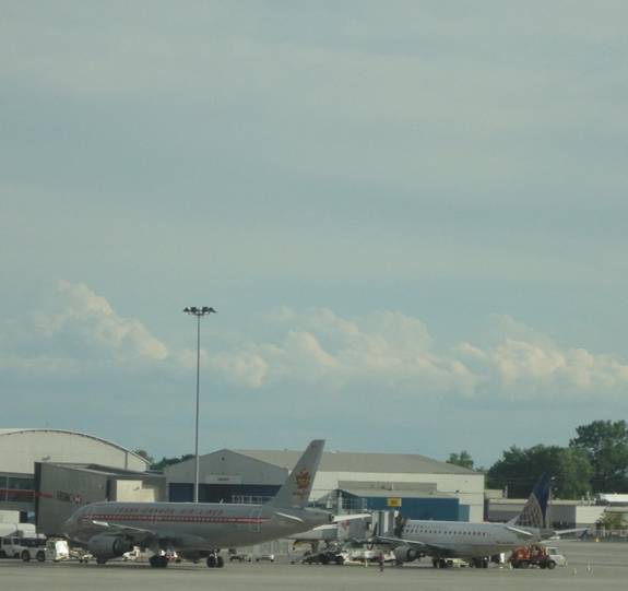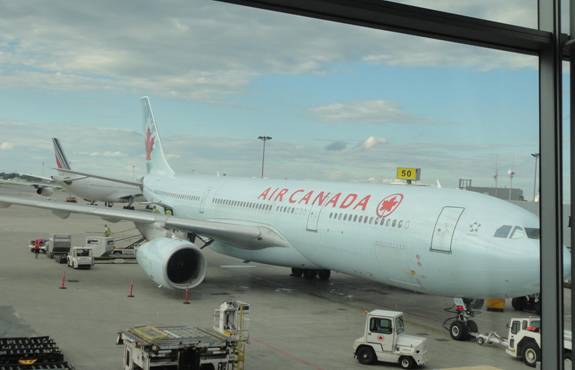 I then went to the station and waited for the shuttle to the airport. The shuttle came a few minutes later and we departed. It was a short drive to the airport, but we got caught in traffic approaching the terminal. While I was waiting, I photographed an Air Canada plane.