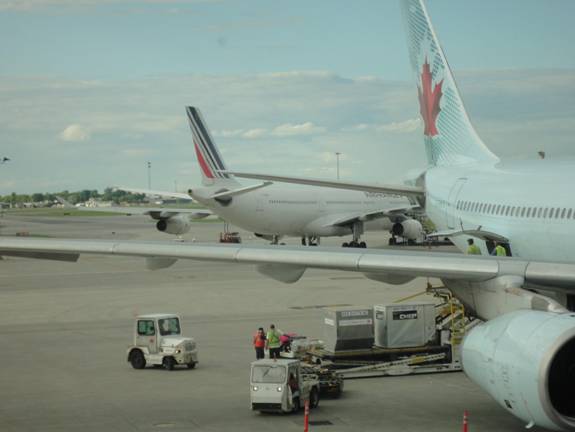 The plane left 25 minutes late. We were held up for a couple minutes because we were blocked by an Air Canada Rouge jet. We had a long taxi out to the runway. My TGV was scheduled to leave at 11:07 am and it was tight already. I did have a plan B if I missed it though.