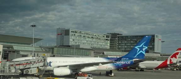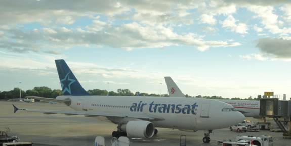 I would be flying Air Transat both ways across the Atlantic. I went inside the terminal and lined up to check in. The line was very long. While I was in line, I phoned home and left a message saying I was in Montreal.