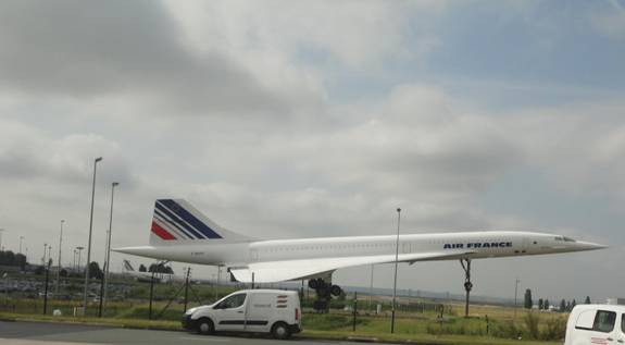 We got to Terminal 3 at Charles de Gaulle Airport in Paris. Instead of using a jet way to go into the terminal, they brought stairs up to the plane. I got off and photographed the plane and the Concord on display.