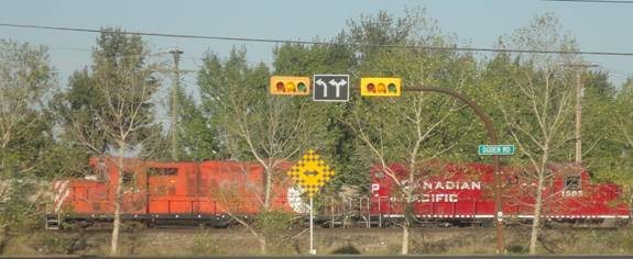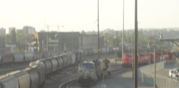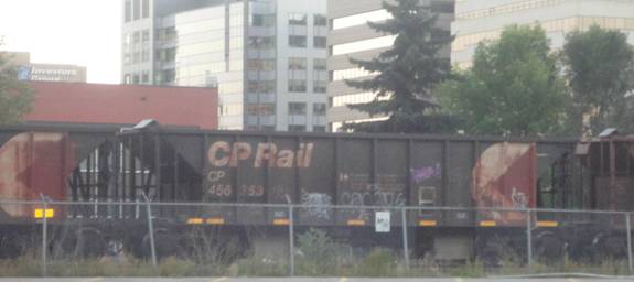 I then caught a bus back to Alyth yard. I photographed a couple CP freights and I got a glimpse of CP FP9As #4106 and 4107 which pull the Royal Canadian Pacific.