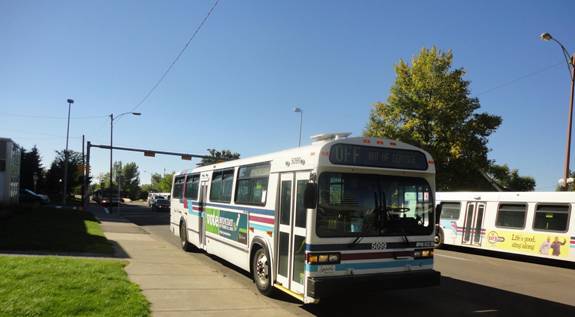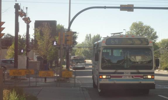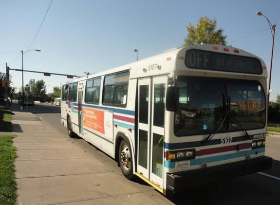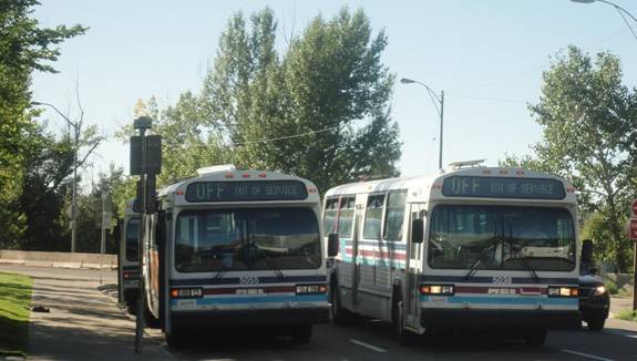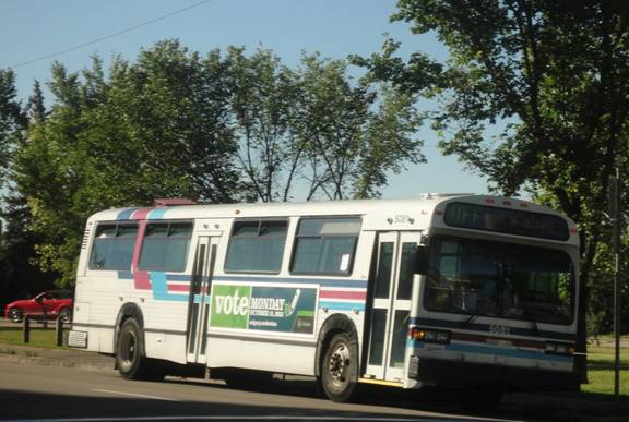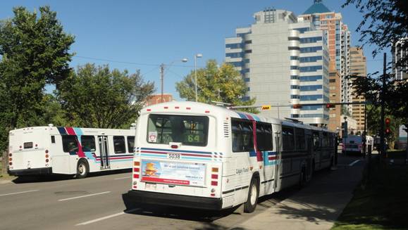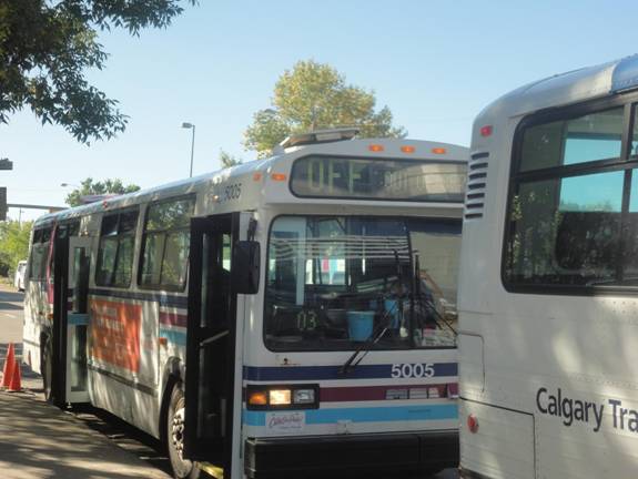 I went into an HMV and bought a book. I then caught a cutaway on route #506 back to Chinook C-Train station. I then rode the C-train downtown and transferred to the route #202 C-Train and headed to the place I was the day before where I saw all those Classics. I waited and I eventually saw some Classics arrive. I photographed them.