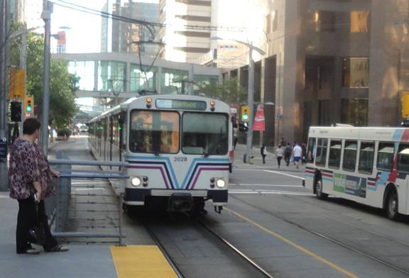 I eventually got on a D60LFr and rode a few blocks. I got off and walked to the C-Train. I saw my train consisted of U-2 cars. I photographed the train before I got on.