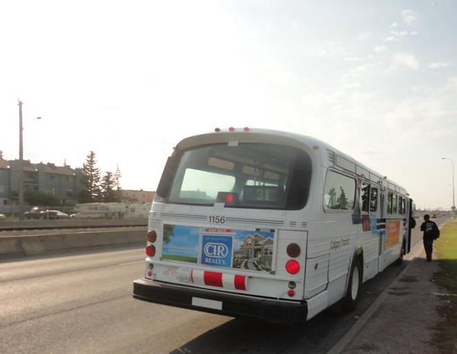 #1156 was signed up for route #33. When I was at SAIT, I rode fishbowls on the #33 on several occasions. We then filmed our charter bus passing over the auto trap safely.