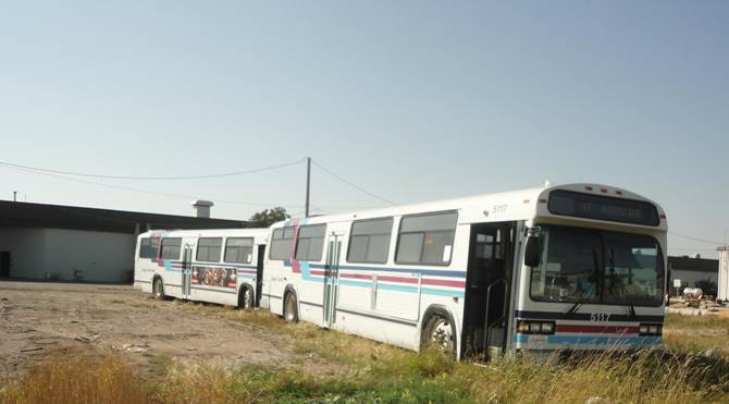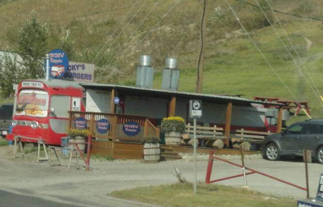 We then headed out. We passed a yard with a Provost Highway coach in it. A few minutes later, I photographed and ex Calgary Transit fishbowl that had been converted to a burger stand.