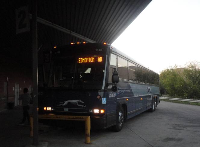 I couldn't get inside the terminal building, so I stayed close to the bus. I then got back on and the bus departed. I worked on this report and watched a DVD. The sun went down.