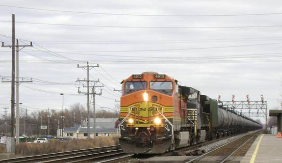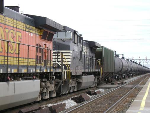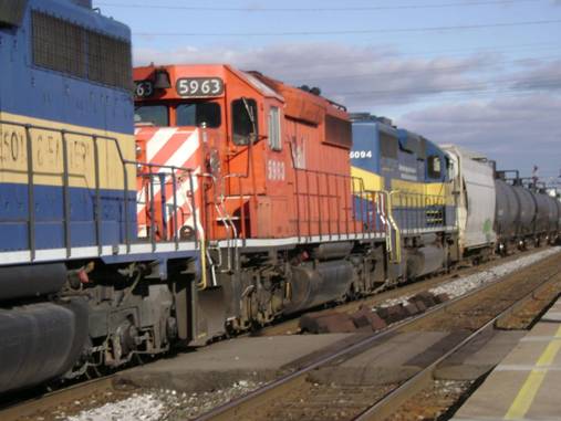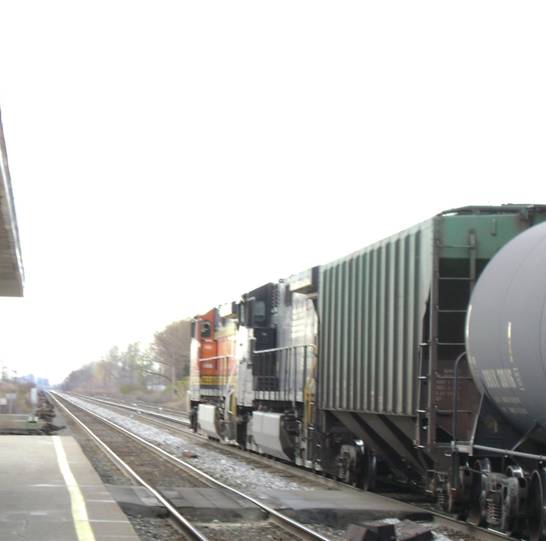 A few minutes later, the first train started moving. A little while later, the train with the DM&E and CP SD40-2s left. Meanwhile, Amtrak train 63 arrived 56 minutes late. As it pulled into the station, I filmed it.