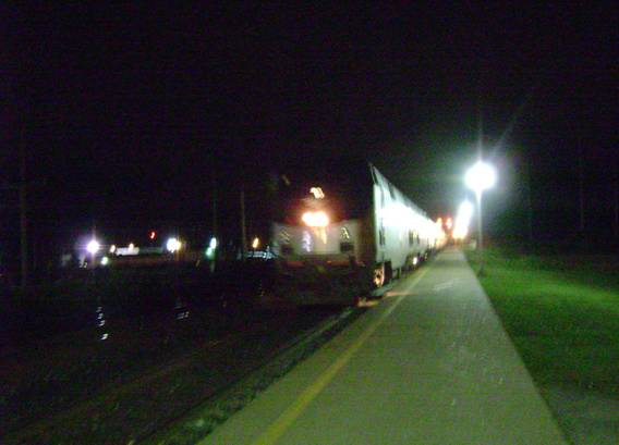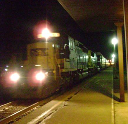 We headed out just before 9:00 pm. We made a stop along the way before heading off to the Peace Bridge. The line up wasn’t too bad. The agent who interviewed us was okay; not anal. We soon left and arrived made a stop at a gas station before we got to Buffalo Depew station shortly after 10:00 pm. I thanked my aunt and headed onto the platform where I photographed a westbound freight.