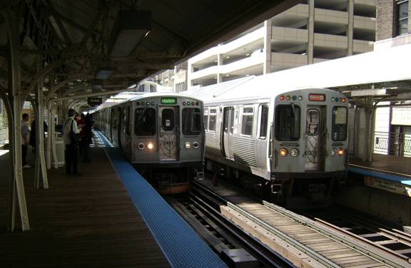 I got on the front car and rode the train to Merchandise Mart. I looked around Merchandise Mart for a few minutes before I caught another brown line train to Adams/Wabash and switched to a Green line train. I then rode a 2400 series train to Clinton station. When I got off, I took a photo.
