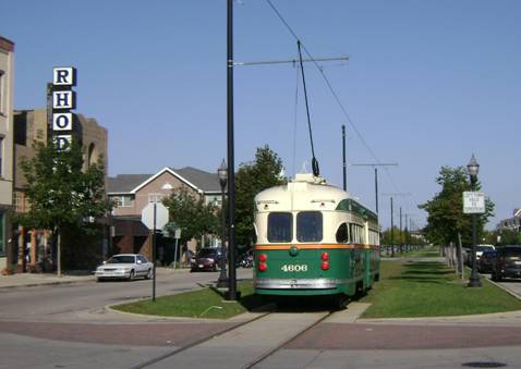I then went out to catch a streetcar. Kenosha has five former Toronto PCC streetcars painted in liveries of many transit systems. They all retained their Toronto number. Car 4606 is painted in Chicago colours. 4609 is in Pittsburgh colours, PCC 4610 retained its Toronto scheme, PCC 4615 is painted for Kenosha, and 4616 is painted in Cincinnati colours. Car 4609 was originally to be painted in Louisville, Kentucky colours, but the people in Kenosha thought the scheme was ugly.