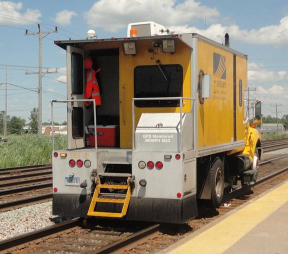 I phoned Julie and found the Maple Leaf was running a few minutes late. While I was waiting, I photographed a Sperry Rail truck.