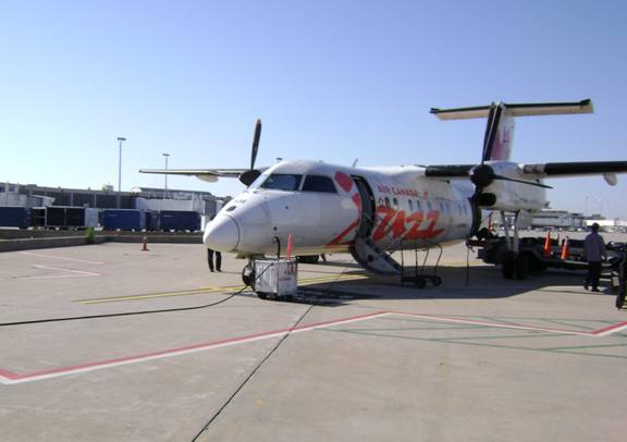 My plane started boarding shortly after 8:45 am. I walked outside and photographed my plane which was a De Havilland Canada Dash 8-100. I took a photo of the plane.