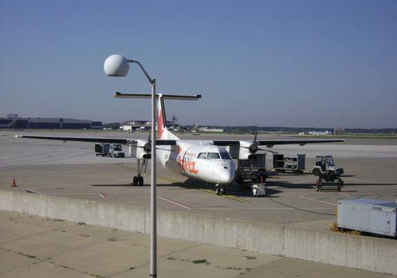 Soon, we were approaching Cleveland. I took some photos of the airport from the plane.
