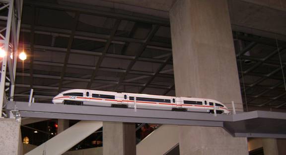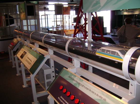 I went back inside and went to the transportation exhibit downstairs. I photographed the O-scale train that runs around on a track which has a drawbridge you can raise. I also photographed an exhibit on how Maglev trains work.