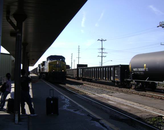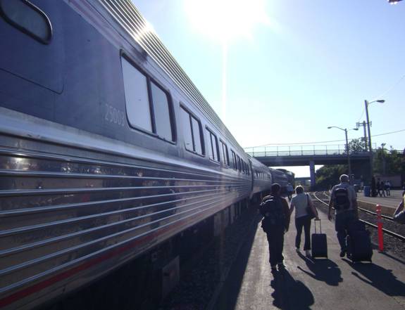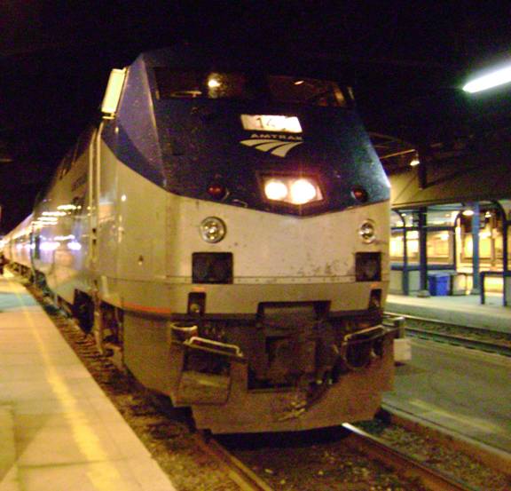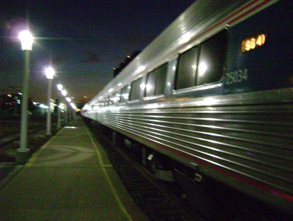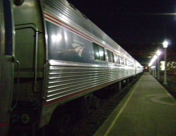 They took me over to the Amtrak station. I got there at 6:22 am. Train 48 was already at the station. However, I still had plenty of time as train 48 was to depart at 7:00 am. I paid for my taxi and ran into the station. The conductor took my ticket in the station, and I headed out onto the platform and boarded the train. Before I boarded, I took two photos.