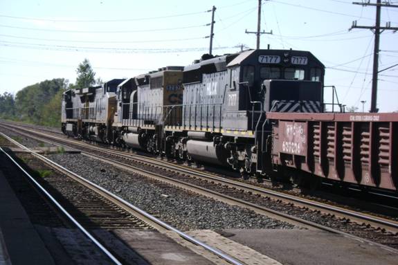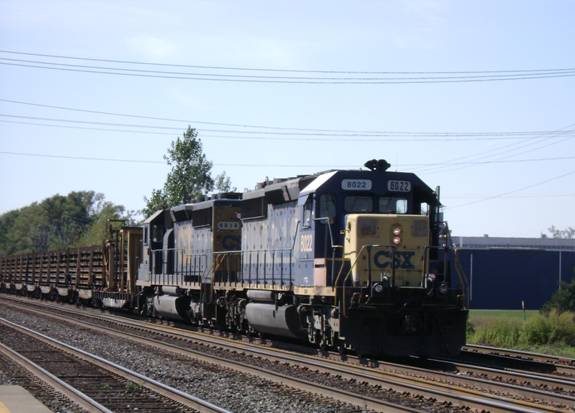 Back on the CSX line, another westbound intermodel passed before I photographed a work train being led by two SD40-2s.
