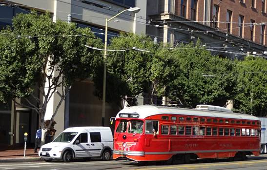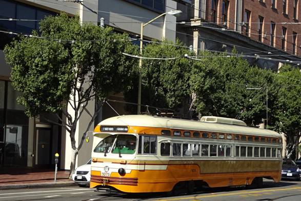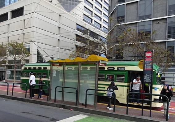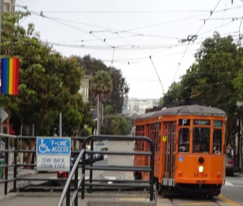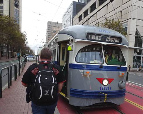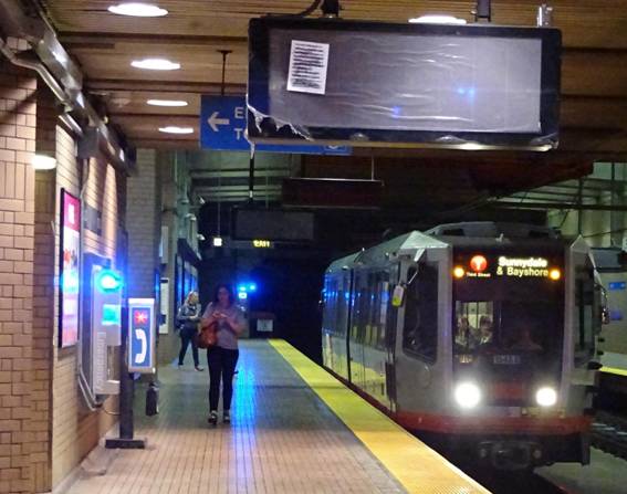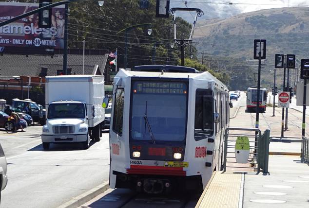 I waited around but only PCCs and buses came. I walked around. When I came back, I just missed a Milan Witt. However, I had a backup plan. I made my way to the light rail station to catch a light rail train that would take me to Castro. It was rush hour and I had to wait a few trains before I got on. I did photograph my train when it arrived.
