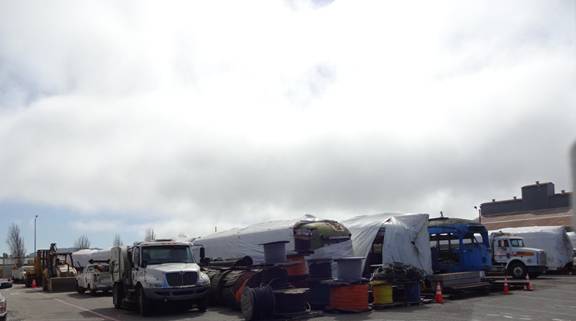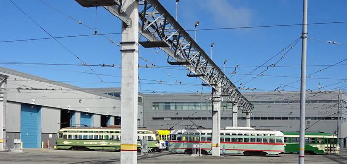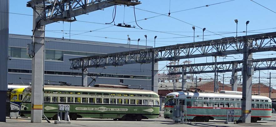 Muni has some of #1040’s sister cars and other PCCs in storage somewhere. I had learned they were somewhere on the waterfront. I decided to try to seek them out. I made my way back to the “T” line and boarded a train. I rode to the end of the line. Along the way, we passed wye track.