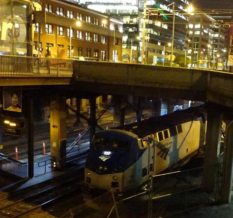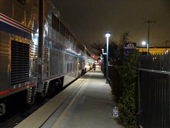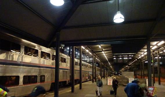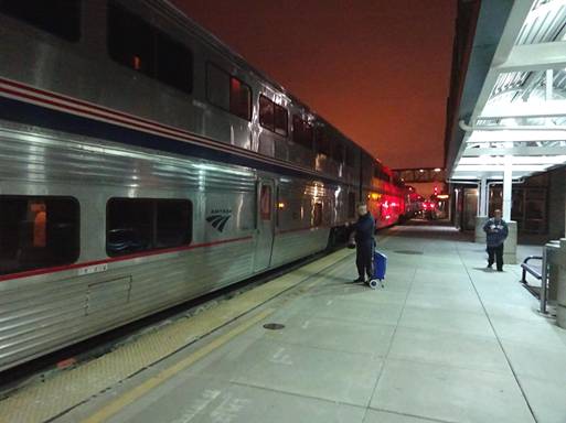 After dinner I walked to the Amtrak station. I phoned Julie and found that the Coast Starlight was running on time.