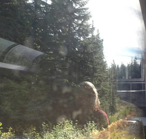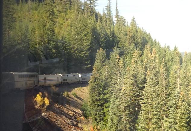 The train made a quick stop in Chemult. There was someone pointing out aspects of the route. We went into some tunnels. I attempted to photograph the train as it went around a curve.