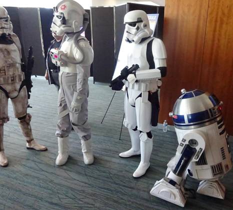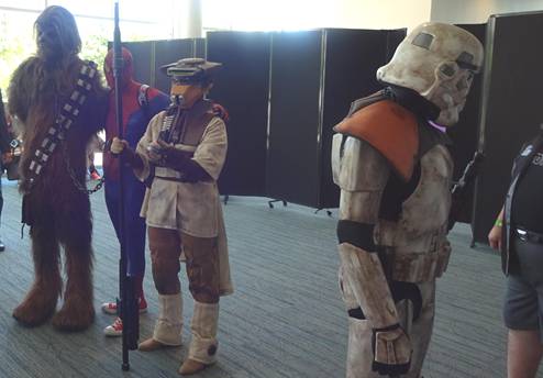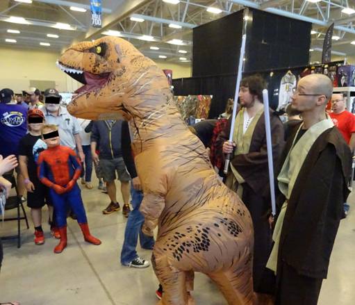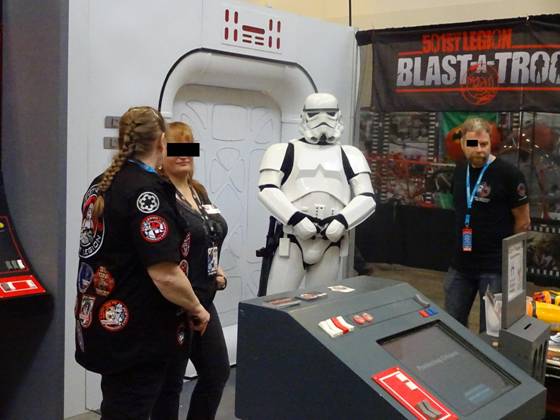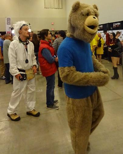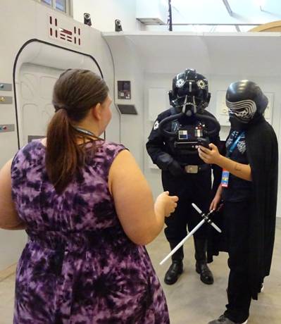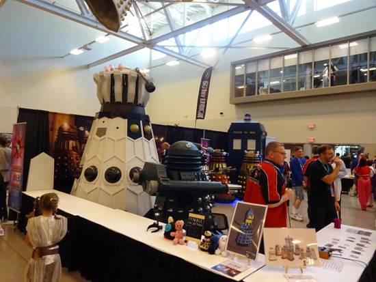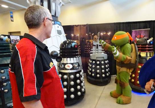 Mark and I then stopped by a Doctor Who exhibit. While I’m not a big Doctor Who fan, I found it interesting as there were several Daleks (robots who are the main antagonist in the show) that interacted with people. They would sometimes say “EXTERMINATE” and blast people with air. I took some photos of people dressed as the Ninja Turtles interacting with the Daleks and other parts of the exhibit.