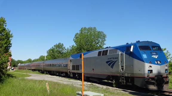 The train passed through Grimsby non stop. We stopped in St. Catherines about 10 minutes later. At St. Catherines, I saw someone had painted the Royal Hudson on a garbage can! We soon departed.