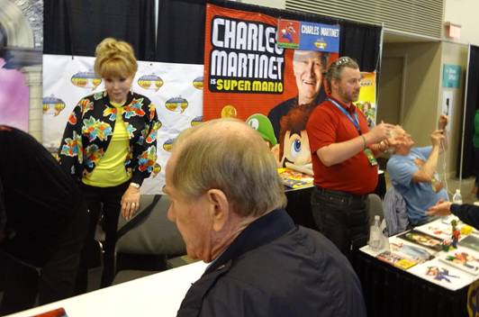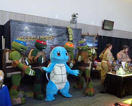 As with previous Comic Con events I've attended, people were dressed up as characters. However, I didn't dress up though. Once inside, I phoned Mark. He was in line to meet Charles Martinet who voiced Mario in the video games. I photographed some people dressed up as the latest incarnation of the Teenage Mutant Ninja Turtles with a Squirtle from Pokemon.