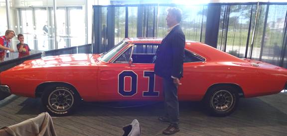 Soon, John Schneider would be posing for photos by the General Lee. I had to buy a pass in order to pose with him and the General Lee, but I was able to. Mark had already done it. I took some photos as well.