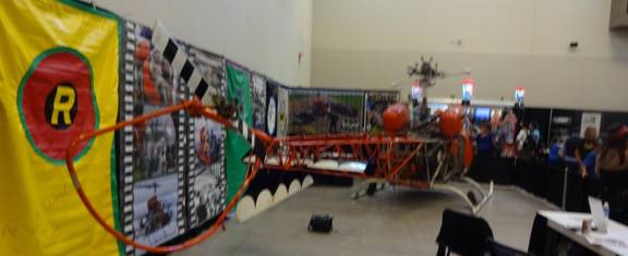 I was hoping to see one presentation on the second floor, but I couldn’t find it. I eventually went downstairs and found Mark. I went by the Bat Copter which was from the 1960s Batman series staring Adam West (who recently passed away) and photographed the helicopter.