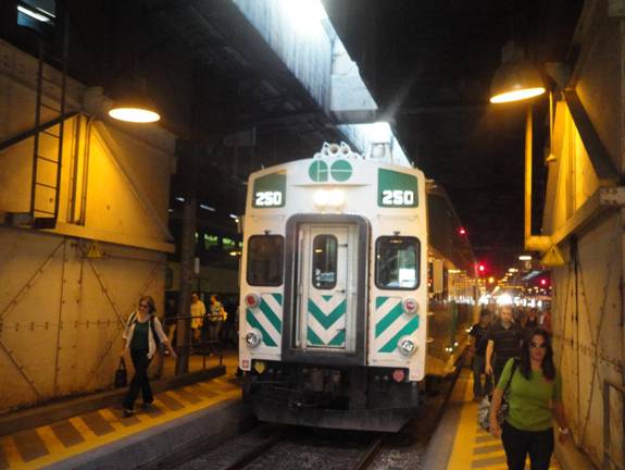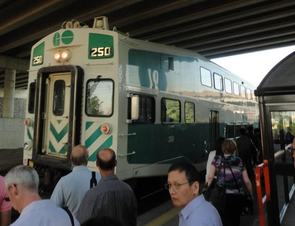 My mom gave me a ride to the Langstaff GO station. I was planning on taking the 8:01 am GO train to Union. When we arrived, I saw the GO train before the one I intended to take depart. That was no big deal. I bought a ticket to Union and waited for the train. When it arrived, I photographed it.