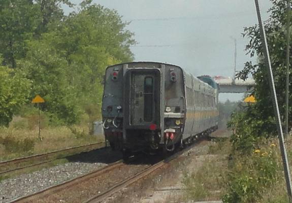 West of Oshawa, VIA train 41 passed, but I was unable to film it. When we passed the DRT garage in Whitby, I saw an XD40 in the yard. We stopped at Oshawa a few minutes later. My ticket was taken after we left Oshawa.