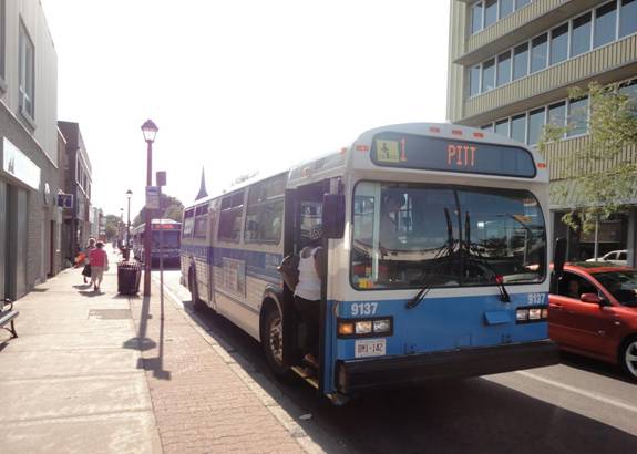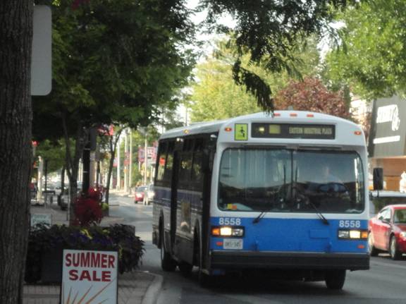 I rode #8558 a few stops before I got off and filmed it pulling away. I saw Classic #9137 a few blocks away going away from me. At first, I thought about riding back to the transit center, but I checked a Cornwall Transit map I got and realized I could ride 9137 sooner if I walked one stop before the stop I was at and I was right. When #9137 showed up, I photographed it.
