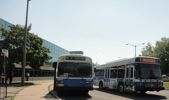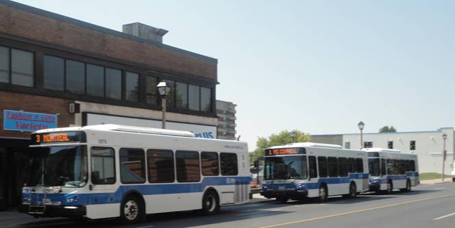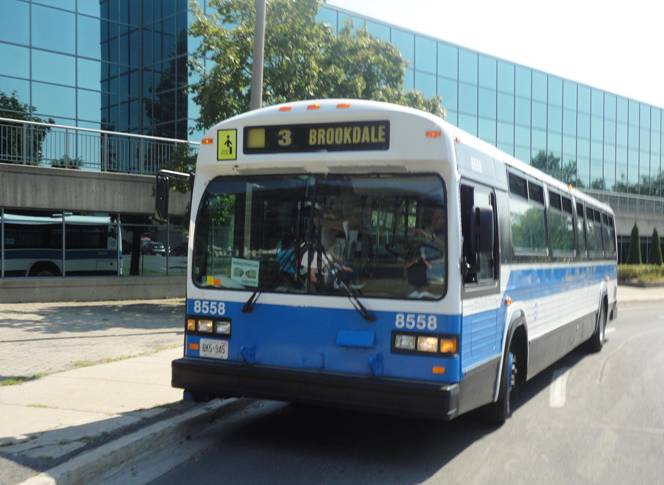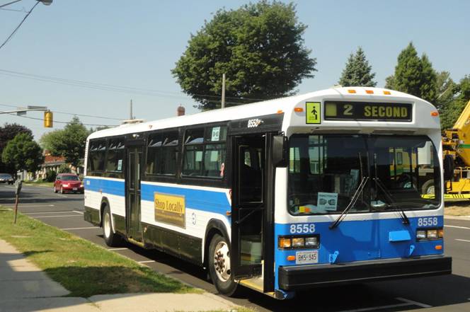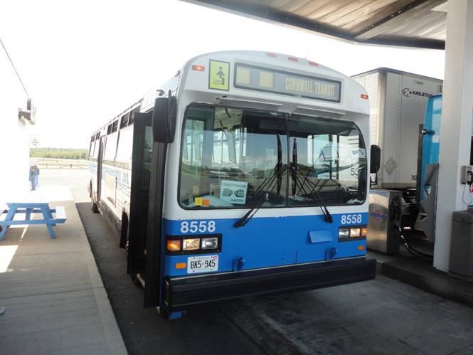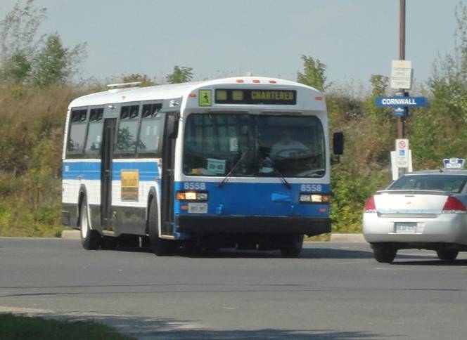 Our third photo stop was at the transit centre downtown. #8558 stopped at the same place I boarded it the day before. We photographed various Cornwall Transit buses in service and #8558.