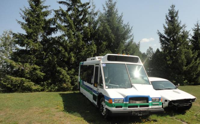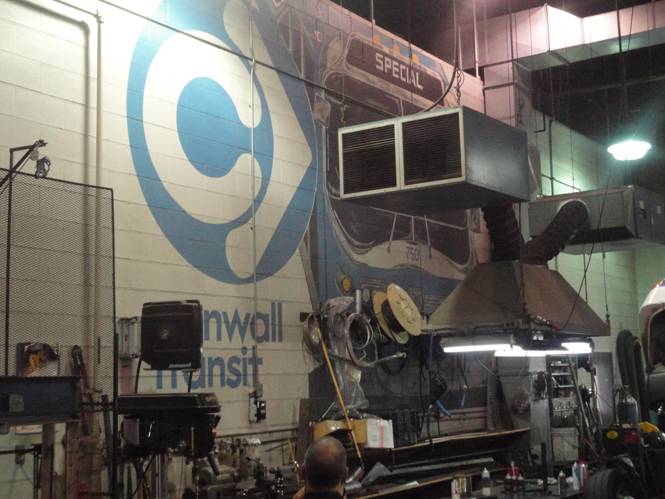 We then headed to the Cornwall Transit bus garage. I saw an ex London Orion 2 parked out back. I photographed it, 8558, and other buses in the storage area of the garage.