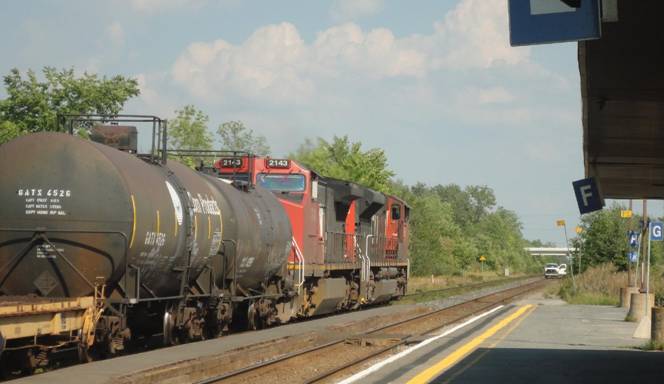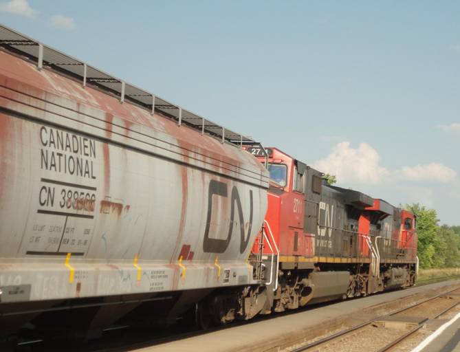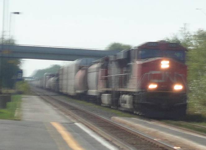 Just east of Belleville, we passed an eastbound CN intermodel. We then passed through Belleville station non-stop.